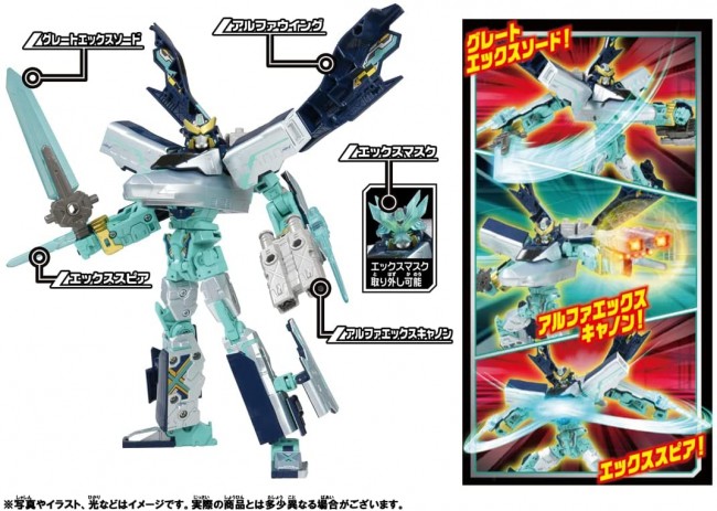 「新幹線変形ロボシンカリオンZ」から 『シンカリオンZアルファエックス』がプラレールで登場! 3両編成仕様で、新幹線からロボットに変形! 「Z合体」を強化するアルファエックスシステムを搭載! 別売りのシンカリオンZ商品、ザイライナー商品と「Z合体」して、パワーアップしよう! シンカリオンZ、ザイライナーを組み合わせて、君だけの最強Z合体を作り出せ! ※レール、電動走行車両は入っていません。 【セット内容】シンカリオンZ アルファエックス(3両編成)(1),武器(5),エックスマスク(1),取扱説明書(1),ラベル(1) (c) TOMY (c)プロジェクト シンカリオン・JR-HECWK/超進化研究所Z・TX