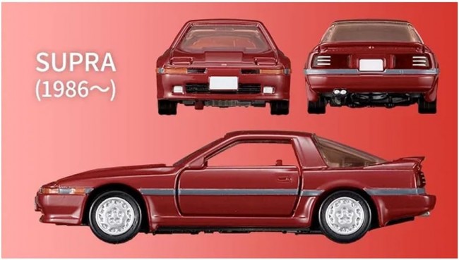 コレクショントイ( 乗用車・完成品 ) トヨタの歴代「SUPRA」が3台セットになって登場! <セット内容>(スケール・アクション) ・SUPRA(1986~)(1/62・左右ドア開閉、リトラクタブルライト可動) ・SUPRA(1993~)(1/62・サスペンション、左右ドア開閉) ・GR SUPRA(2019~)(1/60・サスペンション、左右ドア開閉) 商品内容 SUPRA(1986~)(1)、SUPRA(1993~)(1)、GR SUPRA(2019~)(1) (C) TOMY (タカラトミー ウェブサイトより)