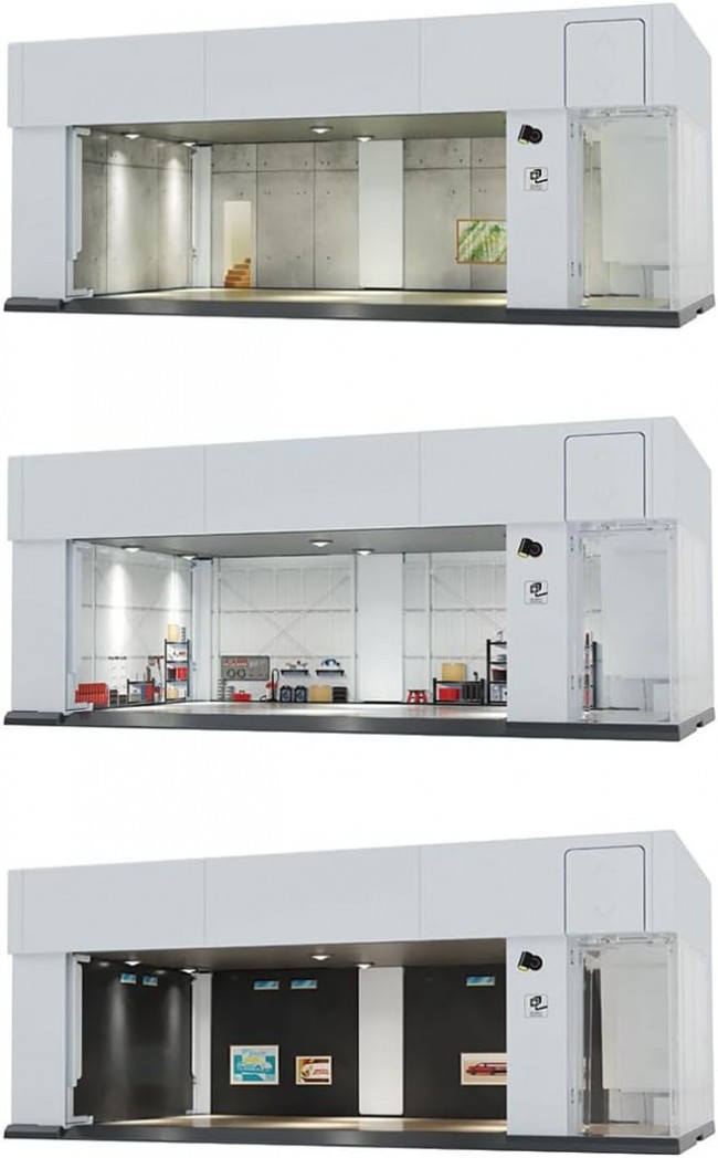 コレクションをスタイリッシュに飾れる、ガレージに新色が登場。 操作パネルをタッチすると、電動シャッターがまるで本物のようにゆっくり開閉。 ガレージのシャッターが開き終わると同時に室内の照明が点灯し、シャッターを閉じると照明は消灯します。 コレクションに合わせて壁面、床面の内装デザイン紙をコーディネートしてディスプレイ可能。 内装デザイン紙 3セット付属。 ※トミカ(ミニカー)は入っていません。 【セット内容】本体(1),土台パーツ(1),透明プレート(1),内装デザイン紙 Aセット(1),内装デザイン紙 Bセット(1),内装デザイン紙 Cセット(1),取扱説明書(1) (C) TOMY 単3形アルカリ乾電池3本使用(電池は別売です。) ※電池はアルカリ乾電池をご使用ください。