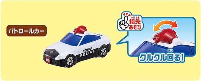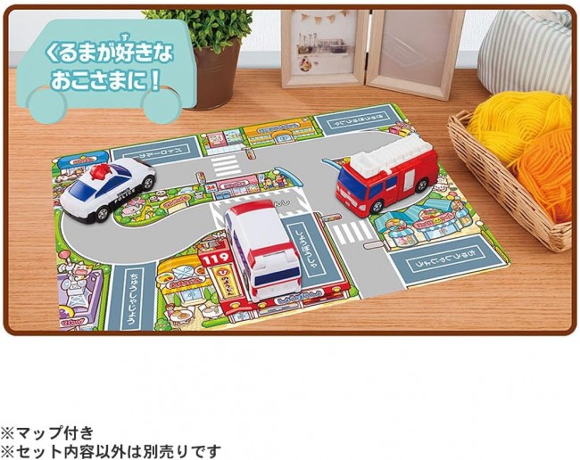 1.5才から楽しく安全に遊べる”はじめてトミカシリーズ”にギフトセットが登場! パトロールカー、消防車、救急車とマップですぐに遊べるオールインワンセット! それぞれの乗り物には指先を使える、発育に合わせた1アクション付き。 特別なカラーの乗り物とパッケージだから、プレゼントにぴったり! トミカデビュー前の小さなお子様に配慮された、プラスチック製の丸いフォルム、にぎりやすい大きなサイズ感でできています。 ギフトに嬉しい特別なパッケージデザインです。 パトロールカーは、ランプを指でクルクル回せる楽しいアクション付き。 消防車は、はしごを引っ張ると伸びる楽しいアクション付き。 救急車は、バックドアが開く楽しいアクション付き。 すぐに遊べるマップ付き。 【セット内容】パトロールカー(1),しょうぼうしゃ(1),きゅうきゅうしゃ(1),マップ(1) (C) TOMY