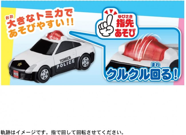 1.5才から楽しく安全に遊べるはじめてトミカシリーズにパトカーが登場! 指先を使った、発育に合わせた1アクションつき! トミカデビュー前の小さなお子様に配慮された、プラスチック製の丸いフォルム、にぎりやすい大きなサイズ感でできています。 パトランプを指でクルクル回せる楽しいアクション付き。 【セット内容】本体(1) (c) TOMY