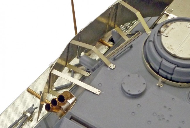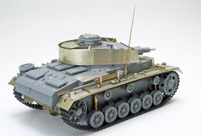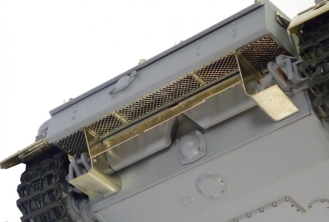 基本的なディテールアップ箇所はもちろん、フェンダー、砲塔・車体シュルツェンや 砲塔後部雑具箱などのエッチングパーツもセット。