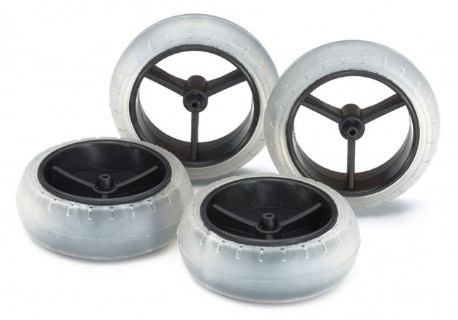 【 基本スペック 】 カーボン強化ホイールと透明バレルタイヤの4本セット。