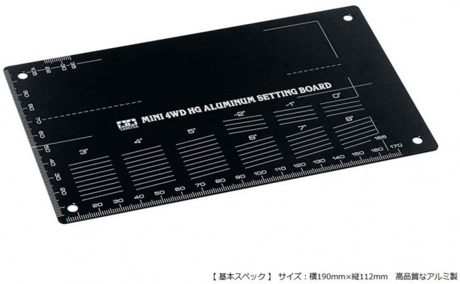 ミニ四駆を上に載せて全長、全幅が測れ、四輪がしっかり接地しているかどうか確認が可能。