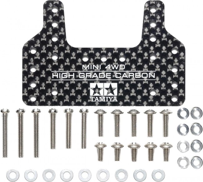 【 マシンのセッティングや性能アップに役立つパーツです 】 アップダウンのあるコースでは欠かせないブレーキセッティング。 ブレーキスポンジを貼る面積が大きく、ローラーと干渉しにくい形状のカーボン製ブレーキステーです。 マスダンパーなどが取り付けられる多くの穴を開けているのが特徴。 軽く強度の高いカーボンプレートは独特なパターンがレーシングムードを高め、タミヤマークや製品ロゴをホワイトで印刷しました。 別売のブレーキスポンジを貼って使います。 マシンの前後に使用可能。 ME、MA、MS、VZ、FM-A、AR、VS、スーパーII/X/XX/TZ-Xシャーシ各車に取り付けできます。 ※印刷が取れるため、クリーナー等は使わないでください。 【 基本スペック 】 1.5mm厚カーボン製ステーに加えて、取り付け用ビスやアルミカラーなどもセット 【 使用可能シャーシ 】 ME、MA、MS、VZ、FM-A、AR、VS、スーパーII / X / XX / TZ-X シャーシ 情報は2026年01月28日時点のものです。製品の名称、価格、発売日、仕様などは予告なく変更する場合があります。 (タミヤ ウェブサイトより)