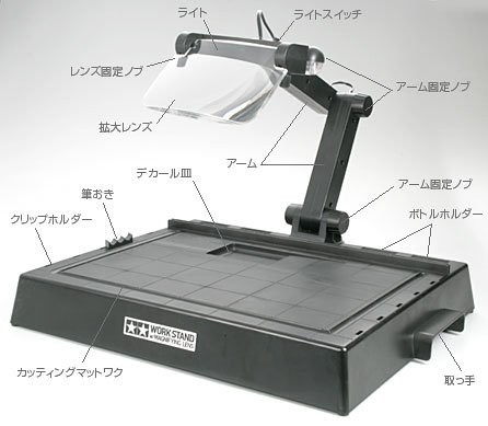 そんなモデラーの悩みやちょっとしたリクエストに応えてくれるのがこのワークスタンド(レンズ付)です。