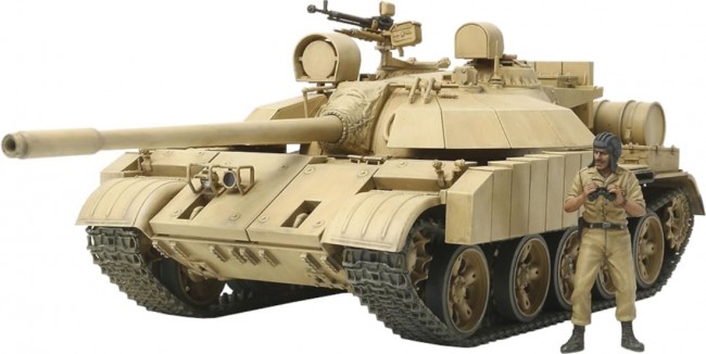 全長=259 mm 写真はキットを組み立て、塗装したものです 【 増加装甲が迫力満点、イラク軍のT-55 】 イラク軍がT-55を独自改修し、1991年の湾岸戦争に投入したのがT-55エニグマ です。 当時、イラク軍はソ連製のT-72やT-54/55などを中核に大きな戦力を誇っていました。 その中でもT-55エニグマは砲塔や車体に増加装甲を装着し、防御力が強化されているのが特徴。 湾岸戦争では陸軍の一般部隊に配備され、指揮車輌として使用されたといわれています。 ちなみに、英語では「謎」を意味する エニグマ という名称は、この戦車を捕獲した多国籍軍が独自に付けたものです。 【 模型要目 】 T-55エニグマのプラスチックモデル組み立てキットです。 ●1/35スケール、全長259mm、全幅109mm。 ●T-55の砲塔や車体に増加装甲を装着し、イメージを一変させた迫力ある姿を実感豊かにモデル化。 ●砲塔の増加装甲はフレームを別パーツとして立体感十分。 ●車体上部は増加装甲のフレームを一体化。 少ないパーツ点数で確実に組み立てられます。 ●履帯はリアルで手軽なベルト式でパーツ化。 ●イラク軍戦車兵の人形1体付き。 【 初回発売月 】 2012年2月 ・T-55に増加装甲を装着した力強い姿を余すことなくモデル化。 ・各部の増加装甲や取り付けフレームなども立体感あふれる仕上がり。 ・間隔をあけて装着された砲塔後部の増加装甲に加え、砲塔の鋳造肌の質感やソ連仕様と異なるエンジングリルも忠実に再現。 ・エニグマの専用パーツ。(画像6枚目参照)(写真は試作品です。製品では全パーツがサンドカラーになります。) ・グレイ部分が増加装甲を含む専用パーツ。(画像7枚目参照)T-55との違いをお確かめください。 ・独特なフォルムの増加装甲がT-55のイメージを一変させます。 情報は2026年01月06日時点のものです。製品の名称、価格、発売日、仕様などは予告なく変更する場合があります。 (タミヤ ウェブサイトより)