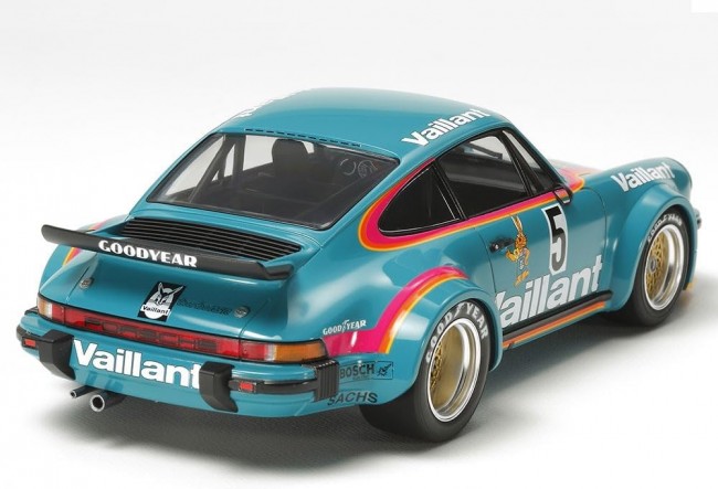 全長=179 mm 写真はキットを組み立て、塗装したものです 【 1976年のDRMで3勝をあげたクレーマーチームの934 】 1976年から始まった国際スポーツカーレース用に開発された市販レーシングカーがポルシェ ターボ RSRです。 ポルシェ930ターボをベースにしたグループ4車両ということで934レーシングとも呼ばれたこのマシンは31台が生産。 中でもドイツの空調器機メーカー「ヴァイラント」をメインスポンサーとしたクレーマーチームのマシンは、コバルトグリーンをベースにオレンジやピンクのストライプを配した目に鮮やかな仕上がり。 1976年のDRM(ドイツスポーツカー選手権)の第2戦マインツ・フィンテン、第4戦ノリスリンク、第10戦ホッケンハイムで優勝を飾るなど、常にトップコンテンダーとして活躍。 ドライバーのボブ・ウォレクはDRMの年間ランキング・ディビジョン1クラスのトップを獲得したのです。 【 模型要目 】 ●1/24スケールのプラスチックモデル組み立てキットです。 ●全長179mm、全幅83mm。 ●市販タイプよりさらに広げられたオーバーフェンダーや大型リヤウイングなど迫力のフォルムを実車そのままにモデル化。 ●ロールケージを装備した室内やサスペンション、シャーシ下面も立体感あふれる仕上がり。 ●メインスポンサーの空調器機メーカー「ヴァイラント」のロゴやウサギのマスコット、カラフルなストライプはカルトグラフ社製スライドマークで用意。 ●精密感を高めるエッチングパーツやインレットマークもセットしました。 【 初回発売月 】 2014年6月 ・ワイドに張り出した前後のフェンダーやグラマラスなリヤビューも見ごたえたっぷり。 ・フロントバンパーに開けられたエアインテーク用メッシュはエッチングパーツを用意。 ・細部表現を引き締め、質感を高めるエッチングパーツとミラー用のインレットマーク。 ・6本の排気管やターボユニット、リヤロワアーム、ドライブシャフトなどを別パーツとして立体感充分のリヤセクション。 ・室内はロールケージやバケットシート、ABC(アクセル・ブレーキ・クラッチ)ペダルなども再現。 ・市販の930ターボと異なるリヤウイング。 前側のルーバーは樹脂部品とエッチングパーツを使用。 情報は2026年01月28日時点のものです。製品の名称、価格、発売日、仕様などは予告なく変更する場合があります。 (タミヤ ウェブサイトより)
