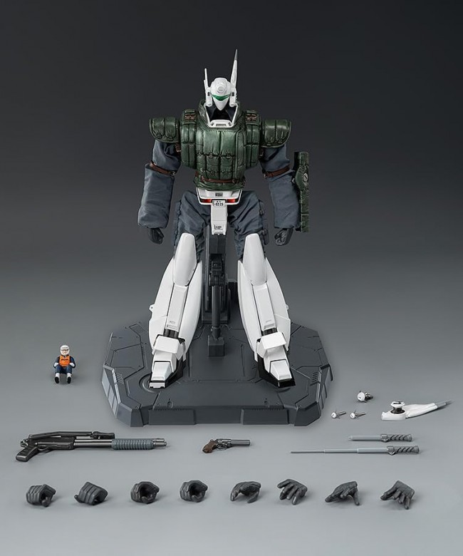 アクションフィギュア(アニメ/SFキャラクター) ロボ道シリーズから1/35スケールのロボ道 イングラム3号機 リアクティブアーマー装備が登場! 『機動警察パトレイバー』に基づくthreezeroのロボ道フィギュア新作として、劇場アニメ『機動警察パトレイバー2 the Movie』より、イングラムのリアクティブアーマー装備バージョンが登場! リアクティブアーマー装備姿の1号機、2号機、3号機がそれぞれ同時リリースです。 「ロボ道 イングラム3号機 リアクティブアーマー装備」は1/35スケール(高さ約23cm)の可動フィギュアで、素材にはABS、PVC、POM、亜鉛合金ダイキャスト、そして布を使用。 亜鉛合金ダイキャストは可動フレームに用いており、これにより全身に合計約50ヶ所の可動ポイントを実現しています。 腕と太腿部の関節カバーには布を使用することで、イングラムのシルエットの再現と可動を両立。 特徴的なリアクティブアーマージャケット部は軟質PVC製で、ディテールを精密に再現。 また、布とリアクティブアーマージャケットにはthreezeroの得意とするウェザリング塗装をうっすらと施すことにより、さらなるリアリティを追及しています。 「ロボ道 イングラム3号機 リアクティブアーマー装備」にはプレイアビリティを向上させる様々なギミックも搭載。 右ふくらはぎのサイドカバーが開閉でき、中にハンドリボルバーカノンを収納可能です。 また右手首の伸縮ギミックにより、収納状態のハンドリボルバーカノンに手を伸ばすギミックが再現できます。 リアクティブアーマージャケットの前面は脱着式で、その下にあるコクピットハッチが開閉可能です。 コクピット内のシートには、『機動警察パトレイバー2 the Movie』版デザインの南雲しのぶのパイロットフィギュア(非可動)を搭乗できます。 コクピットシートは昇降でき、パイロットの頭をイングラムの首元から覗かせる際には防弾フロントガラスが展開可能。 劇中で印象的だったECM展開状態の頭部は一部パーツの差し替え式で再現。 装備としてハンドリボルバーカノン、スタンスティック(延びた状態のものと縮んだ状態のもの)、ライアットガン、そして左前腕部用シールド(内側に縮んだ状態のスタンスティックを収納可能)が付属します。 他、交換式のパーツとしてポーズの異なる各種手首パーツと、ロボ道共通アクションスタンドが付属します。 付属品: ハンドリボルバーカノン、スタンスティック(延びた状態)、スタンスティック(縮んだ状態)、ライアットガン、左前腕部用シールド(内側に縮んだ状態のスタンスティックを収納可能)、ECM展開状態再現用の差し替え式頭部パーツ、交換式手首パーツ各種(リラックスしたポーズの手1対、大きく開いたポーズの手1対、拳1対、ハンドリボルバーカノン保持用の右手、スタンスティック保持用の手1対、ライアットガン保持用の右手)、パイロットフィギュア(南雲しのぶ)、ロボ道アクションスタンド 作品名 機動警察パトレイバー2 the Movie 仕様 ABS&PVC&POM&亜鉛合金製(関節カバーは布製、リアクティブアーマージャケットは軟質PVC製)塗装済み可動フィギュア 1/35スケール 全高:約230mm 原型制作 threezero メーカー threezero (C)HEADGEAR 掲載の写真はサンプル品を撮影しています。実際の商品とは一部仕様等異なる場合があります。 商品の塗装は彩色工程が手作業になるため、商品個々に多少の差異があります。予めご了承ください。 塗料の性質上、開封時に塗装が完全に乾燥していない場合がございます。乾燥していない場合、2~3日程、風通しの良い日陰の室内に置いて、塗装面が乾いたことを確認してから、触れるようにしてください。 未乾燥の状態のまま使用されますと、色移りや指紋あとなどの原因となりますので、ご注意ください。 (グッドスマイルカンパニー ウェブサイトより)