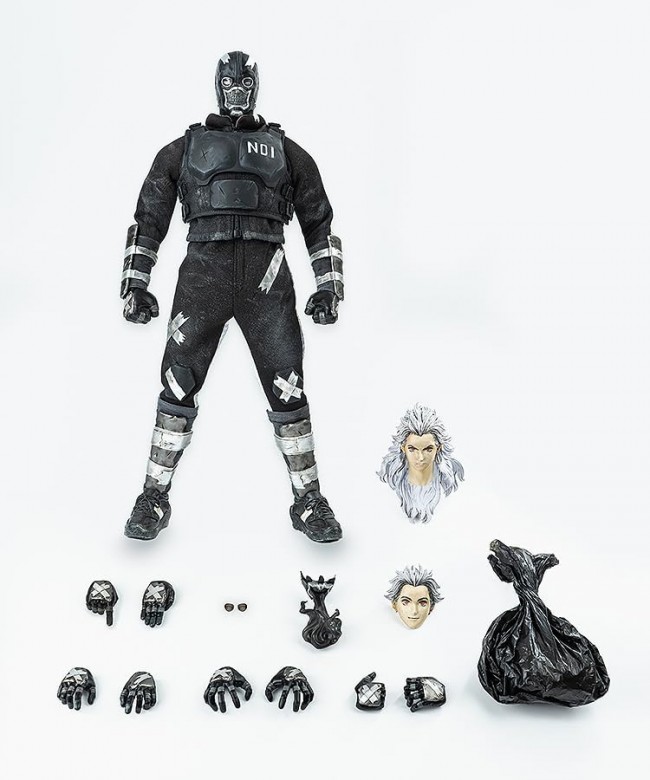 アクションフィギュア(完成品・可動) 漫画『ドロヘドロ』より、能井が1/6スケール可動フィギュアとなって登場! 漫画『ドロヘドロ』より、煙ファミリーで掃除屋(クリーナー)として活動するエリート魔法使い「能井」の1/6スケール可動フィギュアが登場! 原作者・林田球先生が当フィギュア用に描き下ろしたデザインの衣装にて立体化です。 「フィグゼロ 能井」は全高約34.8cm(マスクヘッド使用時)で、全身に約39ヶ所の可動ポイントを有するフル可動フィギュア。 ヘッドパーツはいずれも浅井真紀氏が原型制作を担当。 フィギュアに用いられている素材はPVC、ABS、POM、そして布です。 衣装のうち、アーマーパーツの下のジャージは布製(衣装は脱がせることが出来ない設計となっています)。 交換式ヘッドパーツは素顔ヘッドとマスクヘッドの2種類。 素顔ヘッドの顔パーツはシリアスな表情と笑顔との交換式。特徴的なボリュームのある髪の毛は5ヶ所に可動ジョイントを設けており、ポージングの妨げになりません。 マスクヘッドはゴーグルパーツが開いた目と閉じた笑い目との交換式で、また口パーツも通常の口と魔法のケムリ付きの口との交換式です。 他、ビニール製のゴミ袋と、6種類の交換式手首パーツが付属します。 付属品: 布製のジャージの上着×1、布製のジャージのズボン×1、プラスチックおよび布製のアーマーベスト×1、プラスチックおよび布製の手甲×1対、プラスチックおよび布製の脛当て×1対、プラスチック製のスニーカー×1対、交換式のヘッドパーツ×2(素顔ヘッド×1、マスクヘッド×1)、素顔ヘッド用の交換式表情パーツ×2(シリアスな表情×1、笑顔×1)、マスクヘッド用の交換式ゴーグルパーツ×2対(開いた目×1対、閉じた笑い目×1対)、マスクヘッド用の交換式口パーツ×2(通常の口×1、魔法のケムリ付きの口×1)、ビニール製のゴミ袋、交換式手首パーツ×6種類(拳×1対、掴みかかる手×1対、構えの手×1対、拳を鳴らす手×1対、指さしポーズの右手×1、チョップの右手×1) 作品名 ドロヘドロ 仕様 ABS&PVC&POM製(衣装は布製)塗装済み可動フィギュア 1/6スケール 全高:約348mm ヘッドパーツの原型制作 浅井真紀 その他のパーツの原型制作 threezero メーカー threezero (C)Q-HAYASHIDA/Shogakukan 掲載の写真はサンプル品を撮影しています。実際の商品とは一部仕様等異なる場合があります。 商品の塗装は彩色工程が手作業になるため、商品個々に多少の差異があります。予めご了承ください。 塗料の性質上、開封時に塗装が完全に乾燥していない場合がございます。乾燥していない場合、2~3日程、風通しの良い日陰の室内に置いて、塗装面が乾いたことを確認してから、触れるようにしてください。 未乾燥の状態のまま使用されますと、色移りや指紋あとなどの原因となりますので、ご注意ください。 (グッドスマイルカンパニー ウェブサイトより)