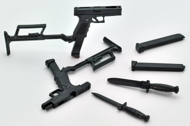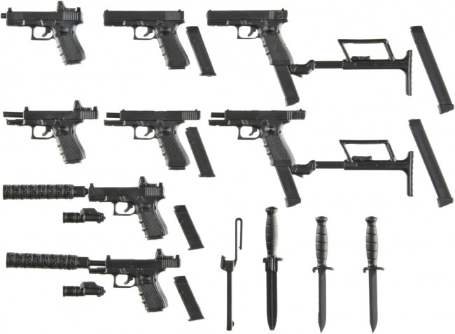 17、18C、19をセット化した1/12スケールモデルです。 特にG19は、米国特殊作戦軍採用拳銃Mk27mod2の形状を新規設計で再現。 「現代版ソーコムピストル」のデザインをご堪能ください。 ・【G17タイプ】 標準型のモデルナンバー”17”。 ・【G18Cタイプ】 軍・法執行機関専用のフルオート型。 ストックとロングマガジンを装備した姿で、スライド上面のポートも再現。 17連マグと33連マグの2種類が付属。 ・【G19タイプ】 米国特殊作戦軍採用拳銃Mk27mod2の形状を新規設計で再現。 MOSスライドにオプティックがマウントされた形状です。 サプレッサー有無の両方をご用意。 ・それぞれスライドが前進状態/後退状態の2種類の形状を収録。 ・約2cm程度のサイズながら各部を精密造形。 ・1/12スケール相当の可動フィギュアと組み合わせてお楽しみください。 ※商品にフィギュアは含まれません。 G17&18C&19タイプについて: G17シリーズは、80年代初頭のオーストリアで誕生し、自動拳銃の設計思想を刷新したといわれるモデルです。 ポリマー樹脂製フレームと変則ダブルアクションのストライカー方式を組み合わせた革新的な構造により、軽量・高耐久・簡素な操作性という要素を高次元で成立させました。 モデルナンバー”17”が標準型。 ”18C”は軍・法執行機関専用のフルオート型。 “19”は、携行性を高めたコンパクト型で、その他にも口径やサイズ、機能に応じて細分化された多彩なバリエーションが存在します。 LittleArmory G17&18C&19タイプ 仕様: 1/12スケール ランナーキット(無彩色) 樹脂製(PS) ※プラモデル用接着剤使用を推奨 商品サイズ 全長:約2cm(G17) ※写真は全て試作品です。商品と異なる場合があります。 ※商品の仕様は予告無く変更される場合があります。 発売元/販売元 株式会社トミーテック (トミーテック ウェブサイトより)