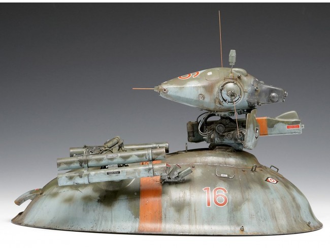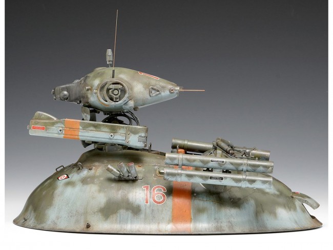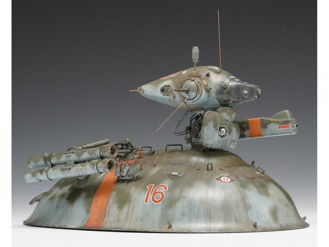 NINJA頭部とロケットランチャーが追加となったオスカルの強行偵察機シュトゥルムフォーゲルが新登場 ホバー駆動の装甲車両に感知ユニットであるノイスポッター頭部を搭載した無人偵察機オスカル。 これまでに、リニアガン装備の後期型、レーザーガン装備の初期型と製品化してきましたが、今回新たにNINJAの頭部とロケットランチャーが追加となったオスカルの強行偵察型が登場します。 その名は「シュトゥルムフォーゲル」。 後方支援能力を高めるために野戦改修キットである追尾ロケット4門を増設、頭部にはNINJAの高性能索敵シーカーを装備した迫力のシルエットとなっています。 【SK362 R6/N Panzer Spahwagen シュトゥルムフォーゲル】 ●スケール:1/20スケール ●サイズ:全長約240mm ●商品仕様:プラスチックモデルキット ●接着剤不要のスナップフィットタイプ ●付属品:マーキングデカール ●登場作品:「マシーネンクリーガー」 (C)Kow Yokoyama 2026