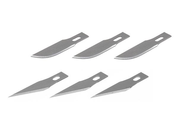 ・模型製作のさまざまな作業にあわせて使い分けができるように2種類の刃を各3枚セットしました。