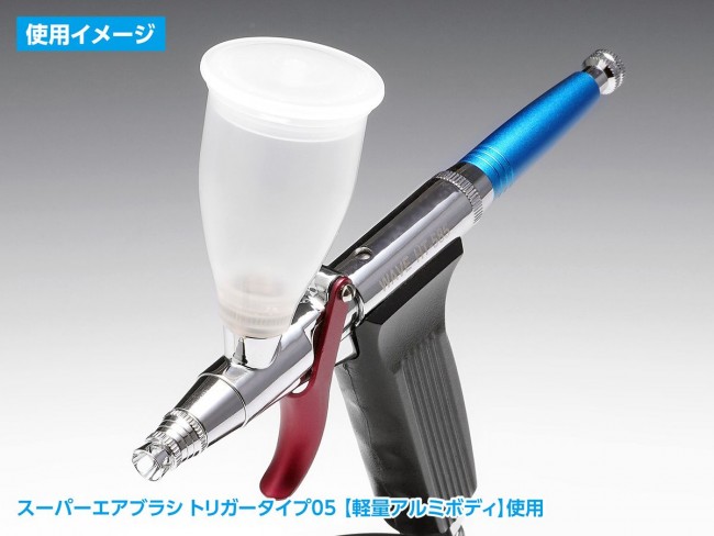 軽量樹脂ボディ製のエアブラシ用塗料カップ! ・取り回しやすく、適度な容量の15ccサイズです。 ・本体重量約12g。同サイズの金属製カップの約1/3の重さで、エアブラシ作業時の負担を軽減。 ・カップは耐溶剤性に優れ、中身の残量も分かりやすい半透明のPP(ポリプロピレン)材を採用。 ・エアブラシとの接続部分にはテフロンOリングが装着済みで、ラッカー系溶剤への耐久性も万全としました。 ■製品素材 本体、フタ:PP/ネジ部:真ちゅう/Oリング:テフロン ■製品サイズ:約35mm(幅)×約60mm(高さ) ■カップ容量:15cc程度 ■製品コード:HT-243 ※画像は開発中のものです。実際の製品とは異なる場合がございます。ご了承ください。 ※説明用の写真に使用している本製品以外の工具・材料・部品などは含まれておりません。 【対応機種(当社製品)】 ・スーパーエアブラシ トリガータイプ【軽量アルミボディ】 ・スーパーエアブラシ トリガータイプ05【軽量アルミボディ】 ・スーパーエアブラシ トリガータイプ07【軽量アルミボディ】 ・スーパーエアブラシ コンパクト【軽量アルミボディ】 ※上記以外の製品には対応しておりません。 (ウェーブ ウェブサイトより)