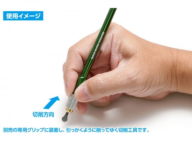 Rラインに刃付けをした小型のスクレーパー ・別売の専用グリップに装着し、引っかくように削ってゆく切削工具です。 ・Rラインの刃先が対象物に“点”で当たるので、ピンポイントの削り作業が可能。 ・刃のRライン全体を使い、まるくへこんだ凹状態に削っていくこともできます。 ・形状の異なる3種類のスクレーパーをラインナップ。 【ご注意】 本製品は刃物です。取扱いにご注意ください。 本製品のご使用には別売の「HGマイクロスクレーパーセット」のグリップ(緑)や「HGマイクロチゼル専用グリップ」に装着する必要があります。 HGマイクロスクレーパー単品 丸(S) ■製品素材: HSS ■刃幅:4mm ■製品コード:HT-687 ※各サイズは参考値です。多少の誤差が発生することがあります。 ※画像は開発中のものです。実際の製品とは異なる場合がございます。ご了承ください。 ※説明用の写真に使用している本製品以外の工具・材料・部品などは含まれておりません。 (ウェーブ ウェブサイトより)