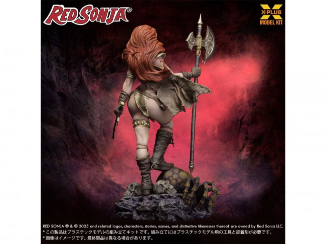 ロバート・E・ハワード著『Hyborian Age』に登場する赤毛の女戦士「レッドソニア」を1/8スケールでプラスチックモデル化! 自分より強い男以外には決して心を許さないと誓う彼女は有名なソードマスターの下で鍛錬を重ねた一流の女戦士。 大勢の敵やモンスターが相手でも怯むことなく立ち向かう強い精神と戦闘力を持っている。 そんな彼女の強くて美しい姿をモデルキットで再現。 中でも身に纏うチェーンメイル(鎖帷子)のビキニアーマーは、猛々しくも艶やかな彼女の魅力をより一層引き立てます。 巨大なアックスとソードに施された細やかな彫刻、ベルトやケープの質感にも注目ください。 ジオラマ台座にはそれまで戦っていた巨大グモが横たわり激闘の熱冷めやらぬ様子を造形。 敵を下したレッドソニアの表情や眼差しはまだまだ戦い足りない様子・・・。 ぜひお手に取ってダイナマイトなプロポーションと戦いの熱気をご堪能ください! *本商品は2025年2月に発売した「1/8スケール レッドソニア プラスチックモデルキット」と同じ商品の再版になります。 【1/8スケール レッドソニア プラスチックモデルキット】 商品形態 プラスチック モデルキット (未組立、未塗装) 商品サイズ 全高:約 27cm 材質/仕様 材質:HIPS RED SONJA (R) & (C) 2025 and related logos, characters, stories, names, and distinctive likenesses thereof are owned by Red Sonja LLC.