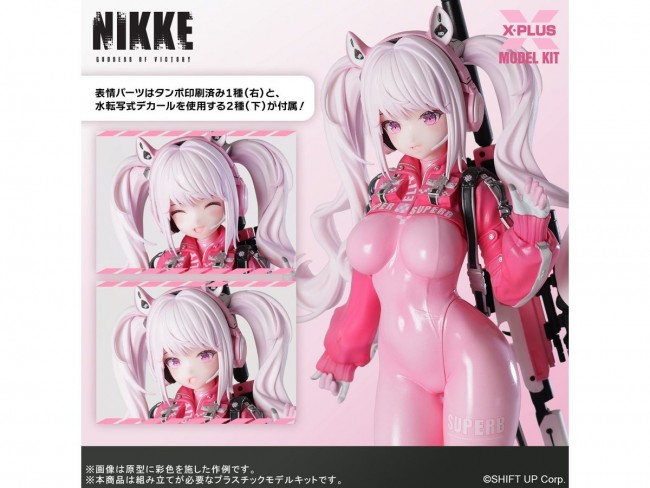 大ヒットスマホゲーム『勝利の女神:NIKKE』より、「アリス」がプラスチックモデルキットで登場! 7色の成型色パーツで色分けを再現しており、塗装なしでも組み立てとデカール貼りで美しい仕上がりを楽しめます。 表情パーツは、タンポ印刷済みのものが1種、水転写デカールで仕上げるものが2種付属。 可愛らしいプロポーションはもちろん、髪の毛やスナイパーライフルのシャープな造形はプラスチックモデルならではの魅力です。 ぜひこの機会にお手元でお楽しみください! 原型:Hobby sakura 彩色:youz ※組み立てには模型用の工具を使用ください。 ※本製品の組み立てはハメ込み式ですが、別売りのプラスチックモデル用の接着剤を使用する事で、よりしっかりとした組み立てが可能です。 ※製品の仕様は予告なく変更する場合があります。ご了承ください。 【アリス プラスチックモデルキット】 商品形態 プラスチック モデルキット (未組立、未塗装) 商品サイズ 全高:約24cm 材質/仕様 材質:HIPS (C)SHIFT UP Corp.